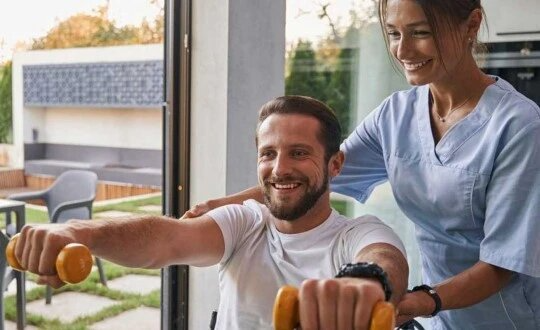 A service that provides physiotherapy to patients in a home environment, where physiotherapists design a treatment program dedicated to improving the patient’s health and alleviating symptoms.